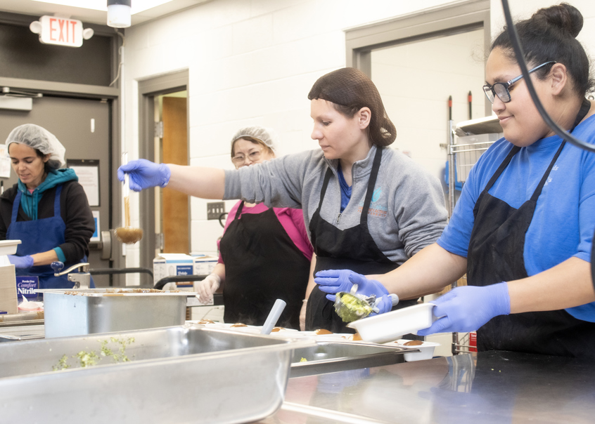 Monica Diaz, kitchen assistant for Great Lakes Community Action Partnership (GLCAP), has been coming in early for more than 20 years. Her day starts at 6 a.m. in the Fremont Senior Center kitchen, checking temperatures, packing cold items, and doing other work to prepare for lunch.